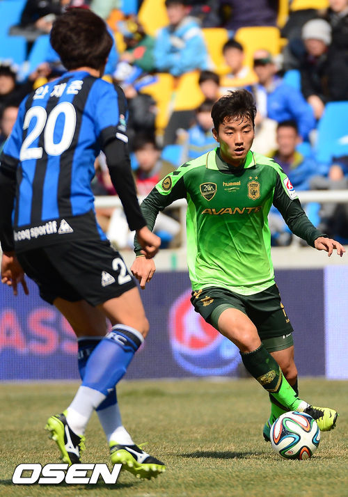 15일 오후 인천광역시 중구 도원동 인천축구전용경기장에서 열린 현대오일뱅크 K리그 클래식 2014 2라운드 인천 유나이티드와 전북 현대 경기 전반 전북 이승렬이 돌파를 시도하고 있다.