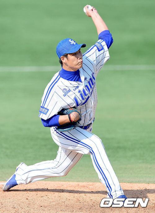 8회초 롯데 공격 마운드에 오른 삼성 투수 권혁이 힘차게 공을 뿌리고 있다.