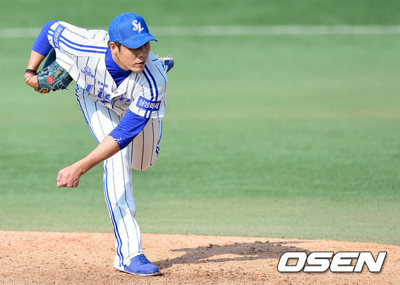 8회초 롯데 공격 마운드에 오른 삼성 투수 권혁이 힘차게 공을 뿌리고 있다.