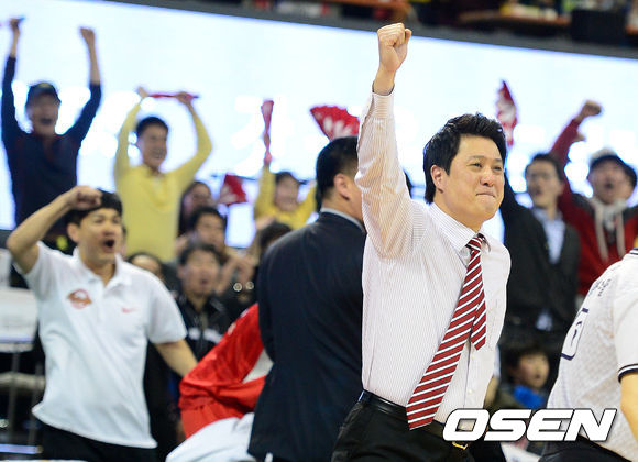 4쿼터 SK 문경은 감독이 역전에 성공하며 기뻐하고 있다. / jpnews@osen.co.kr