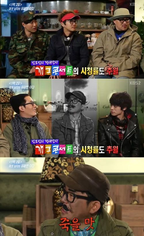 이날 차태현은 '1박2일'이 높은 인기를 끌고 있는 것에 대해 "우리가 '개콘' 시청률을 추월했다"고 말하며 미소 지었다.