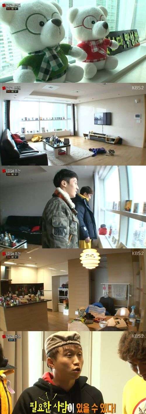15일 방송된 KBS 2TV 예능프로그램 '인간의 조건'에서는 최소한의 물건으로 생활하는 멤버들(박성호 김준호 김준현 정태호 양상국 허경환 박성광)의 모습이 그려졌다.