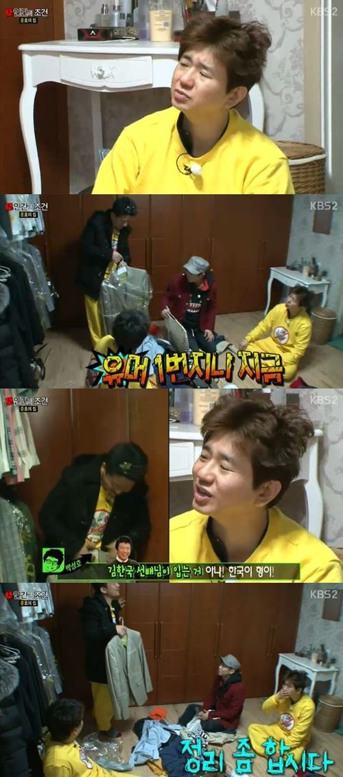 15일 방송된 KBS 2TV 예능프로그램 '인간의 조건'에서는 최소한의 물건으로 생활하는 멤버들(박성호 김준호 김준현 정태호 양상국 허경환 박성광)의 모습이 그려졌다.