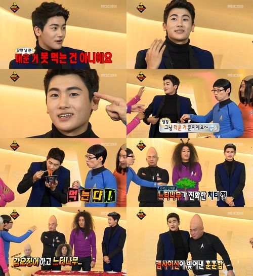 또 매운 음식에 땀이 송골송골 맺히면서도 "더워서 그런 것이다"며 끝까지 고통을 참아내는 박형식의 모습은 '일밤-진짜사나이' 속 최선을 다하는 아기 병사 이미지와 묘하게 겹치며 보는 이들에게 재미를 줬다. 특히 이는 동공이 풀리고 침을 흘리는 '무한도전' 멤버들의 정신없는 모습과 비교돼 프로그램의 재미를 살리는데 큰 몫을 했다.