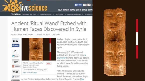 9000년 전 지팡이가 발견됐다. 시리아 남부에서 9000년 전 고대 인류가 사용한 지팡이로 추전되고 있다.