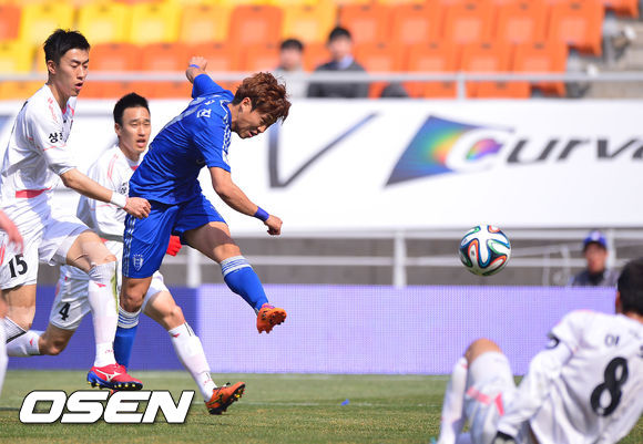 16일 오후 경기도 수원시 수원월드컵경기장에서 열린 '2014 현대오일뱅크 K리그 클래식(1부리그)' 수원 삼성과 상주 상무의 경기, 전반 수원 서정진이 슛을 시도하고 있다.