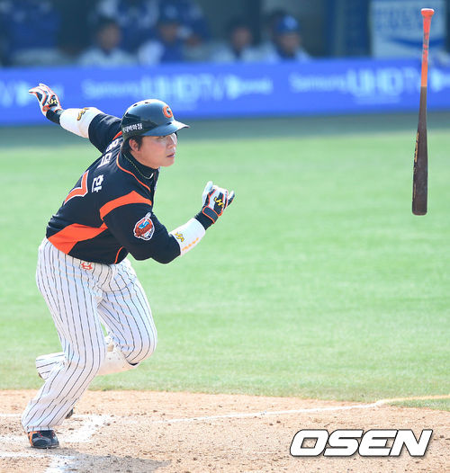 6회초 롯데 공격 1사 주자없는 상황 용덕한이 우전안타를 날리고 있다.