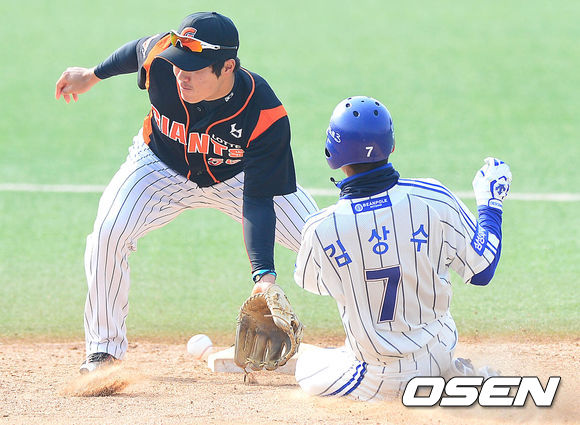 7회말 삼성 공격 1사 1루 상황 주자 김상수가 2루 도루에 성공하고 있다.