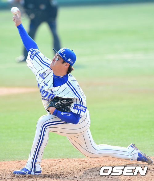 9회초 롯데 공격 마운드에 오른 삼성 투수 안지만이 힘차게 공을 뿌리고 있다.