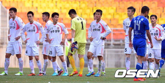 경기종료후 상무 선수들이 아쉬워하고 있다. / soul1014@osen.co.kr