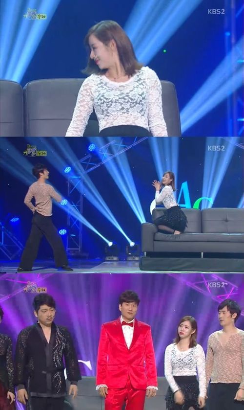 안소미는 16일 오후에 방송된 KBS 2TV 예능프로그램 '개그콘서트'의 코너 ‘댄수다’에서 무대에 준비된 쇼파를 이용해 ‘보름달’ 안무를 선보였다.