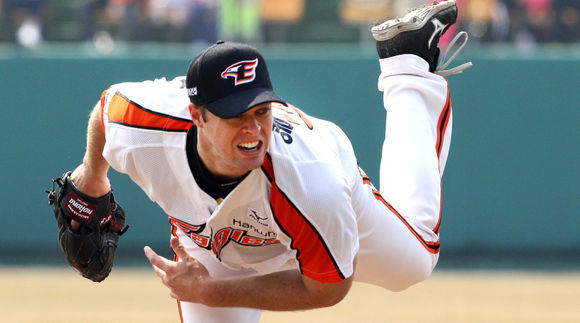 거물급 외국인 투수로 관심을 모으고 있는 한화 앤드류 앨버스(29)가 베일을 벗었다. 2이닝밖에 던지지 않아 정확한 평가와 전망을 내리기 어렵지만 확실한 것 하나는 메이저리그 완봉승 투수로 100% 힘을 보여주지 않았다는 점이다.