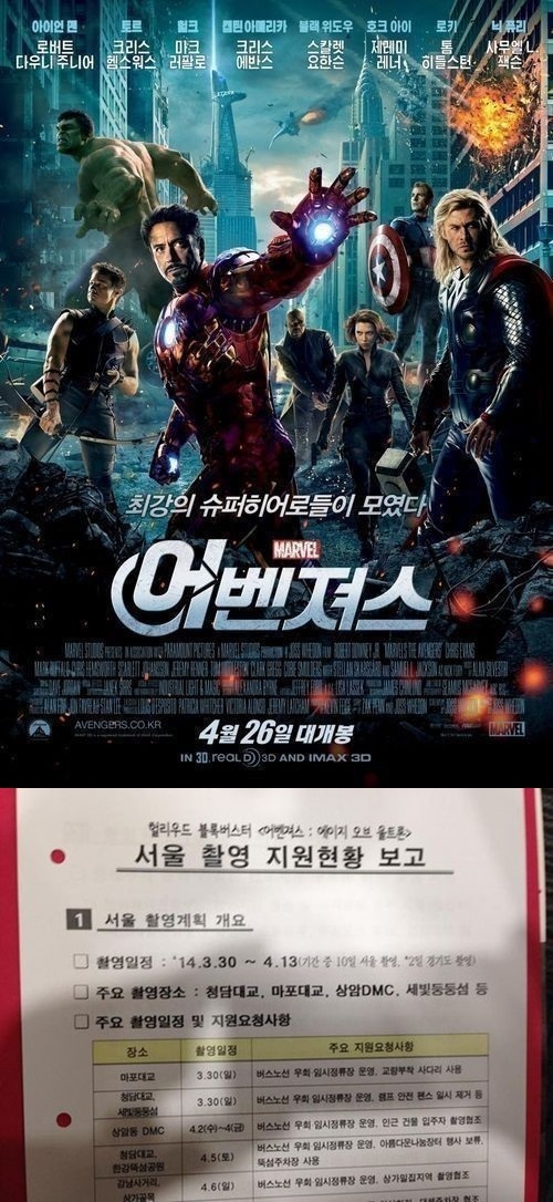 해당 글과 함께 공개된 문서에는 '어벤져스2'가 오는 30일부터 4월 13일까지 대부분 서울에서 촬영되며 청담대교, 마포대교, 상암 DMC가 주로 촬영지임이 명시돼 있다. 또한 버스노선 우회, 임시정류정 운영 등 서울특별시의 촬영에 관련된 지원사항까지 상세하게 적혀 있어 서울시에서 영화 촬영에 적극적으로 협조할 예정임이 드러난다.