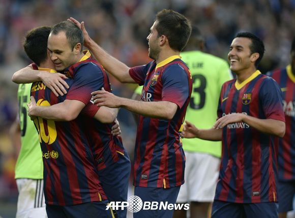 바르셀로나는 17일(이하 한국시간) 캄프 노우서 열린 2013-2014시즌 스페인 프리메라리가 28라운드 오사수나와 경기서 해트트릭을 기록한 메시의 활약 속에 7-0 대승을 거뒀다. 지난 바야돌리드전에서 충격패를 당하며 분위기가 가라앉았던 바르셀로나는 이번 대승으로 다음 주 열리는 레알 마드리드와의 엘 클라시코 준비에 총력을 다할 수 있게 됐다.