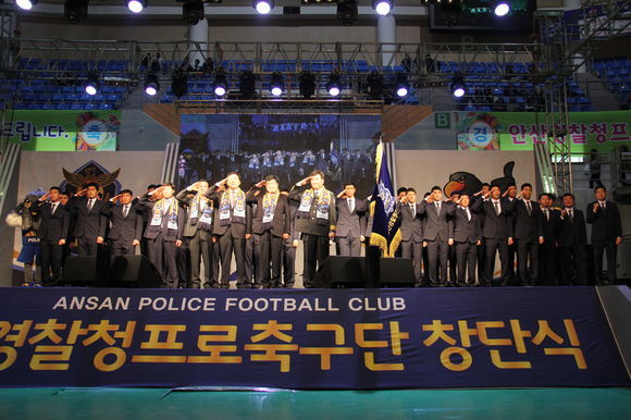 안산 경찰청 프로축구단(구단주 김철민 안산시장)이 지난 16일 안산 상록수 체육관에서 선수단과 안산 시민들이 참석한 가운데 창단식을 개최했다.