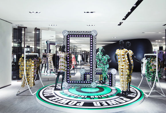 매장에는 팝업 스토어가 마련돼 영국 힙합 가수 겸 작곡가인 M.I.A와의 콜래보 컬렉션이 전시 되며 베르수스의 아이콘적인 안전핀들이 사용된 액세서리 및 여성용 드레스와 남성용 제품들을 대거 선보였다. 또한 콜래보 제품들과 스터드 장식의 가죽 재킷, 옵틱 프린트의 재킷과 바지 등의 제품들도 만나 볼 수 있다.