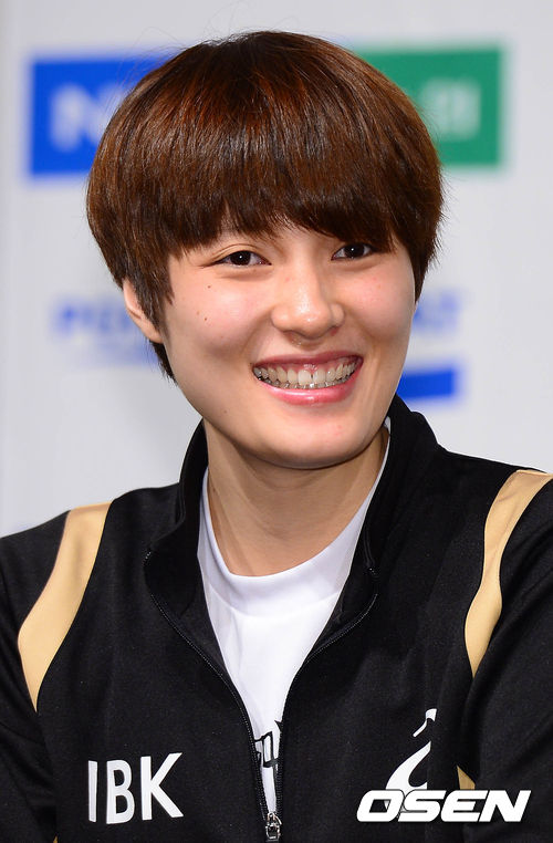 17일 오전 서울 청담동 호텔리베라에서 열린 'NH농협 2013-2014 V리그' 포스트시즌 미디어데이에서 IBK기업은행 김희진이 미소를 짓고 있다.
