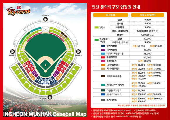자세한 입장권 가격은 구단 홈페이지(www.skwyverns.com) 입장권 안내를 참조하면 된다.