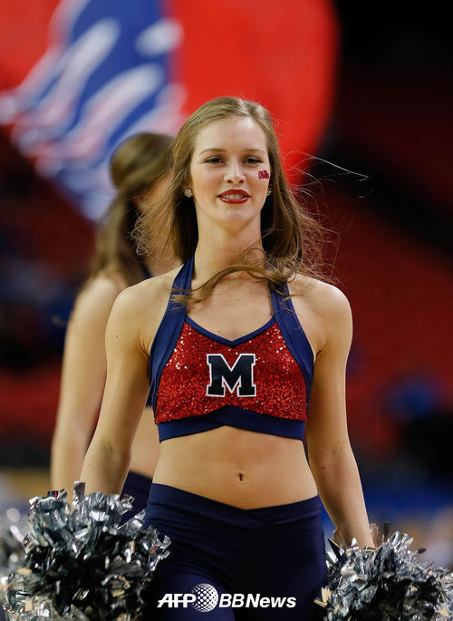 [OSEN=AFP 특약] 13일(현지시간) 미국 조지아주 아틀란타 조지아 돔에서 진행된 미국대학스포츠협회(NCAA) 남자농구 토너먼트에서 미시시피 대학교의 치어리더가 화려한 공연을 펼치고 있다.