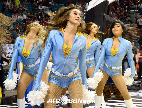 [OSEN=AFP 특약] 15일(현지시간) 미국 네바다주 라스베이거스 MGM 그랜드 가든 아레나에서 진행된 미국대학스포츠협회(NCAA) 남자농구 토너먼트에서 UCLA 대학교의 치어리더가 화려한 공연을 펼치고 있다.