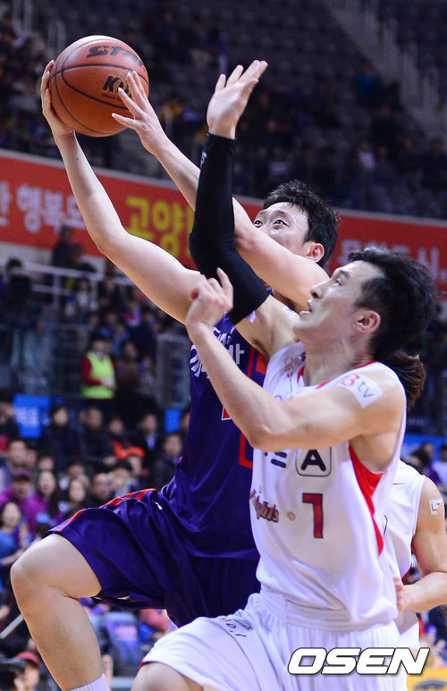 17일 오후 고양시 고양체육관에서 열린 '2013-2014 KB국민카드 프로농구' 6강 플레이오프 3차전 고양 오리온스와 서울 SK의 경기 2쿼터 김강선이 슛을 시도하고 있다.