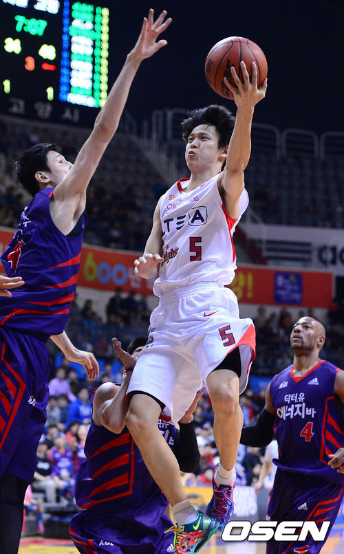 17일 오후 고양시 고양체육관에서 열린 '2013-2014 KB국민카드 프로농구' 6강 플레이오프 3차전 고양 오리온스와 서울 SK의 경기 3쿼터 김선형이 최진수를 피해 슛을 시도하고 있다.