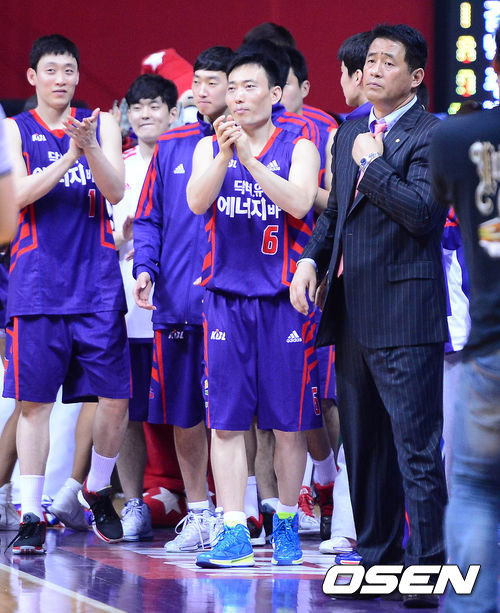 17일 오후 고양시 고양체육관에서 열린 '2013-2014 KB국민카드 프로농구' 6강 플레이오프 3차전 고양 오리온스와 서울 SK의 경기 종료 직전 벤치에 있던 오리온스 선수들이 동료들에게 박수를 보내고 있다.
