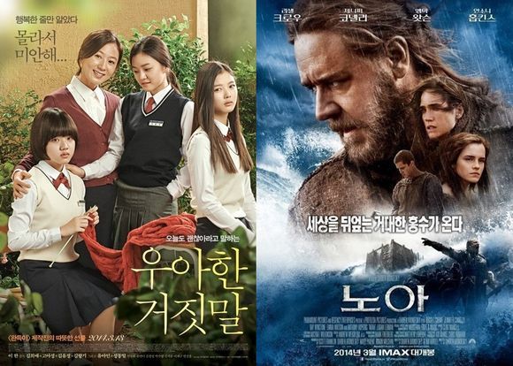 '우아한 거짓말'의 경쟁작은 더 이상 '300:제국의 부활'이 아니라 20일 개봉하는 할리우드 블록버스터 '노아'다. 18일 오전 7시 30분 기준 38%의 예매점유율로 1위를 달리고 있다. '블랙스완'의 대런 아로노프스키 감독의 차기작이라 더욱 기대를 모으고 있는 작품. '노아'가 한국영화들을 집어삼키게 될 지 아니면 장르와 색깔이 각기 다른 국내외 영화들이 고른 파이를 나눠가질 지 주목되는 바다.