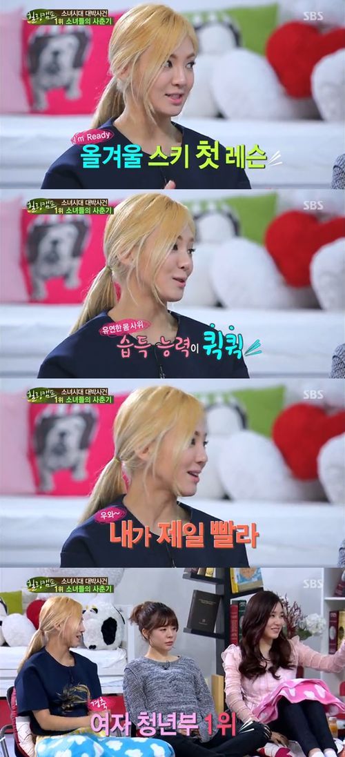 효연은 또한 "헬멧이랑 마스크를 쓰면 아무도 못 알아본다. 결과가 안 좋으면 그냥 스키타고 집에 가면 되었다"며 "그런데 내가 거기서 제일 빨랐다. 1등을 해서 헬멧을 벗었다"고 여자청년부에서 1등을 한 사실을 털어놔 놀라움을 자아냈다.