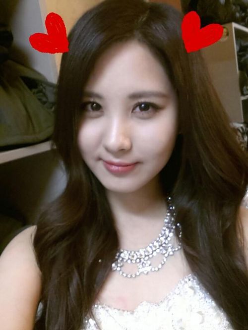 공개된 사진 속 서현은 화려한 의상을 입고 있다. 머리는 자연스럽게 풀어 내렸는데, 살짝 지은 미소에서는 애교가 느껴지기도 한다. 사진의 마무리에는 하트 스티커 두 개로 귀여운 매력을 더했다.