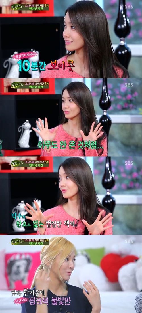 5대 사건 중 하나인 ‘텐미닛 사건’에 대해 윤아는 “2007년 1집 ‘다시 만난 세계’ 당시 드림콘서트에서 10분간 보이콧이 있었다. 남자그룹 팬들이 보이콧을 했다”고 말문을 열었다.