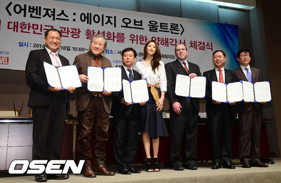 18일 오전 서울 중구 프레스센터 국제회의장에서 마블 스튜디오와 영화진흥위원회의 '어벤져스: 에이지 오브 울트론' 촬영 및 대한민국 관광 활성화를 위한 양해각서(MOU) 체결식이 진행됐다.