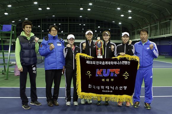 여자대학부 신흥 강호로 부상한 충남대(감독 김명진)는 지난 17일 ‘국토의 중앙’ 양구 테니스파크에서 열린 ‘제68회 전국 춘계대학테니스연맹전’ 여자대학부 결승전서 ‘전통의 강호’ 명지대(감독 신순호)를 종합전적 3-2로 제압하고 우승기를 들어 올렸다.