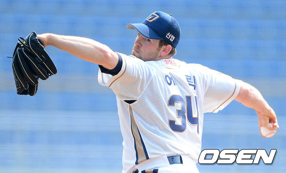 18일 오후 창원 마산야구장에서 열린 '2014 한국야쿠르트 세븐 프로야구' 시범경기 NC 다이노스와 두산 베어스의 경기, 1회초 무사에서 NC 선발투수 에릭이 힘차게 공을 던지고 있다.