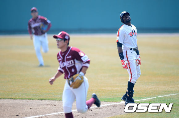 1회말 2사에서 한화 피에가 유격수 땅볼로 물러나며 아쉬워하고 있다..