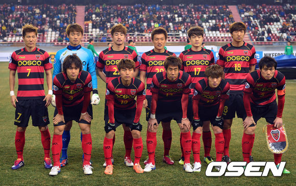 18일 오후 경북 포항시 포항스틸야드서 열린 2014 아시아축구연맹(AFC) 챔피언스리그 E조 조별리그 3차전 포항 스틸러스와 산둥 루넝(중국)의 경기에 앞서 포항 베스트 일레븐이 포토타임을 갖고 있다.