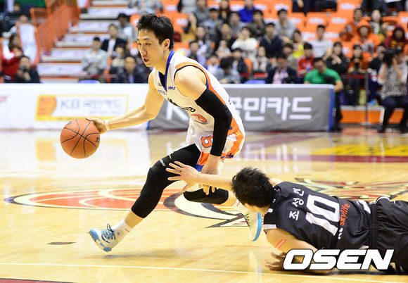 3쿼터 전자랜드 정영삼이 KT 조성민을 돌파하고 있다.