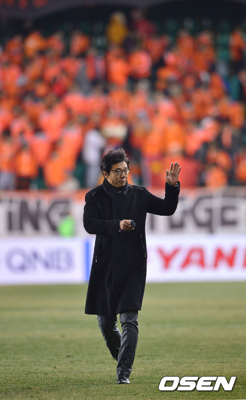 경기종료 후 포항 황선홍 감독이 팬들에게 인사를 하고 있다. / soul1014@osen.co.kr