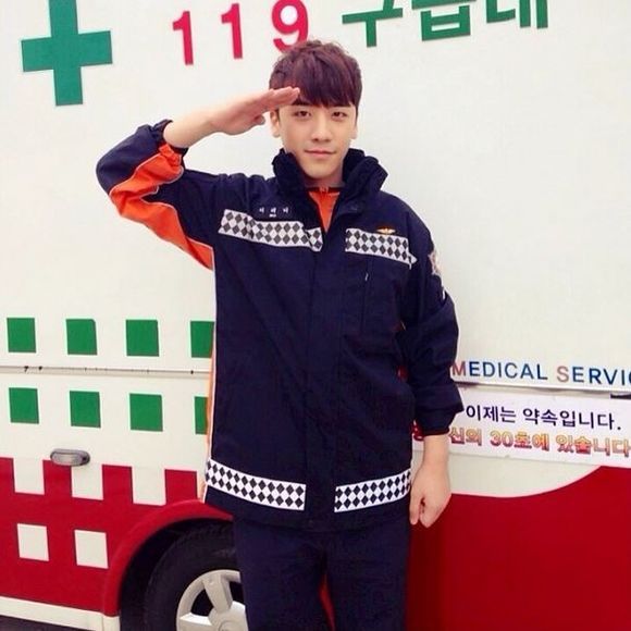 공개된 사진 속 승리는 구급대원의 복장으로 구급차 앞에서 거수경례를 하고 있는 모습이 담겨있다. 늠름하고 믿음직스러워 보이는 그의 모습이 눈길을 사로잡는다.