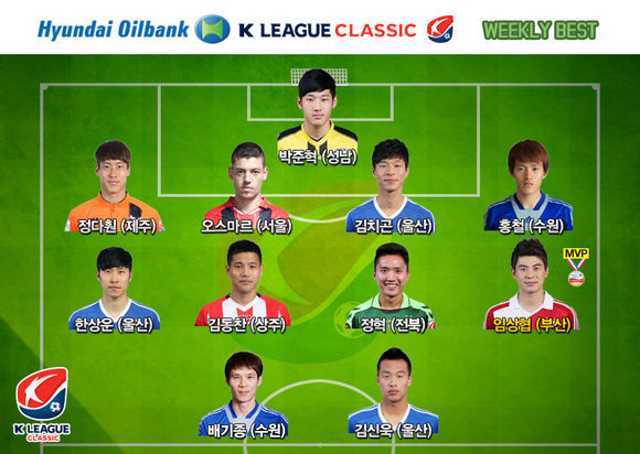 베스트 11 공격수는 김신욱(울산)과 배기종(수원)이 차지했고, 미드필더는 임상협과 정혁(전북), 김동찬(상주), 한상운(울산)이 이름을 올렸다. 수비라인은 홍철(수원)과 김치곤(울산), 오스마르(서울), 정다훤(제주)이 선정됐고, 골키퍼는 박준혁(성남)이 차지했다.