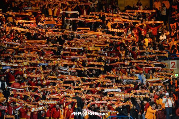 갈라타사라이 팬들이 팀의 8강 진출을 염원하며 응원을 펼치고 있다.