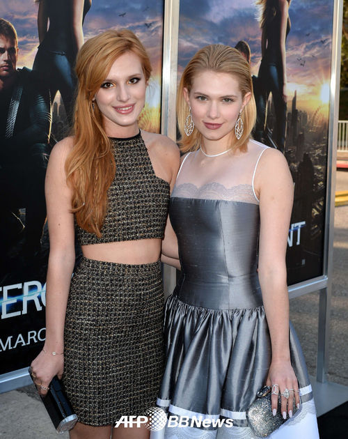 [OSEN=사진팀] 18일(현지시간) 미국 캘리포니아주 로스엔젤레스의 레전시 브루인 극장에서 열린 영화 '다이버전트' 시사회에서 할리우드 배우 벨라 손과 클라우디아 리가 포즈를 취하고 있다.