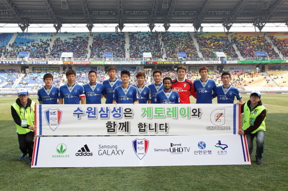 주장 염기훈은 "K리그는 땀을 많이 흘리는 혹서기 기후 조건에서도 리그 일정이 진행되기 때문에 수분 보충은 경기력과도 직결된다" 며 "일반 물에 비해 수분 보충이 빠른 게토레이 제품을 후원받게 되어 기쁘게 생각한다. 더 좋은 경기력으로 팬들의 기대에 보답하겠다"고 말했다.