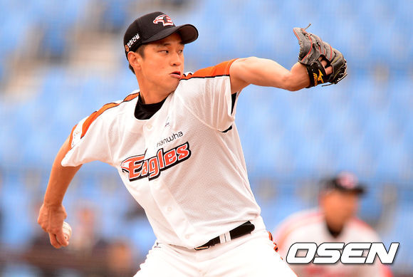 8회초 마운드에 오른 한화 윤규진이 역투하고 있다.