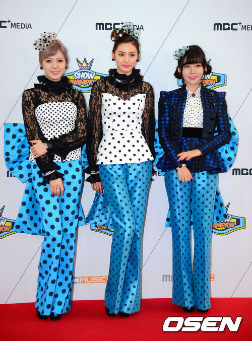 19일 오후 경기도 고양시 일산 장항동 빛마루 방송지원센터에서 MBC MUSIC '쇼 챔피언' 100회 기념행사에서 오렌지캬라멜이 포토타임을 갖고 있다.
