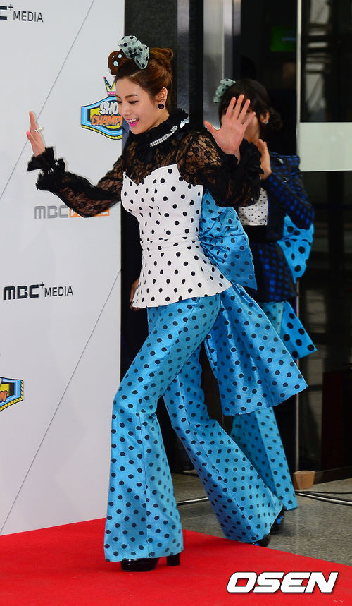 19일 오후 경기도 고양시 일산 장항동 빛마루 방송지원센터에서 MBC MUSIC '쇼 챔피언' 100회 기념행사에서 오렌지캬라멜 나나가 입장하고 있다.