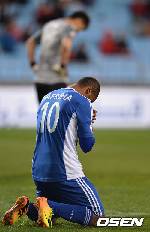 19일 경남 울산시 울산문수경기장에서 열린 2014 아시아축구연맹(AFC) 챔피언스리그(이하 ACL) H조 조별리그 3차전 울산 현대와 구이저우 런허(중국)의 경기, 후반 울산 하피냐가 페널티킥으로 선취골을 넣은뒤 기뻐하고 있다.