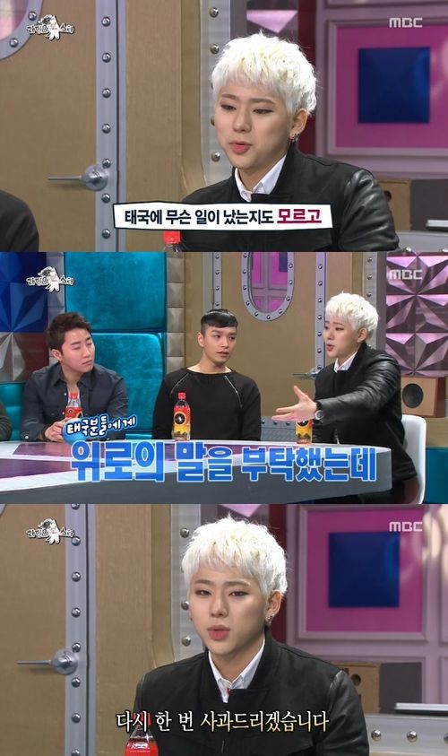 지코는 19일 방송된 MBC '황금어장-라디오스타'에 출연해 과거 2012년 태국에서 막말을 해 논란이 됐던 사건을 언급하며 사과했다.