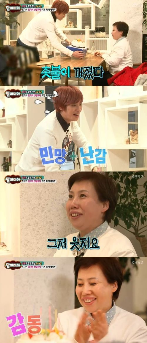 19일 방송된 KBS 2TV 예능프로그램 '맘마미아'에서는 박미선, 이영자, 허경환, 틴탑 니엘의 '엄마와 함께 하는 24시간' 마지막 이야기가 방송됐다.