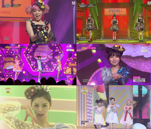지난주 첫 방송을 통해 초밥 콘셉트의 헤어 액세서리와 의상으로 화제가 됐던 오렌지캬라멜은 여세를 몰아 사탕 등의 특이한 콘셉트를 이어가며 팬들을 즐겁게 해줄 예정이다.